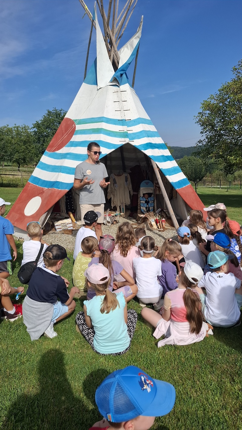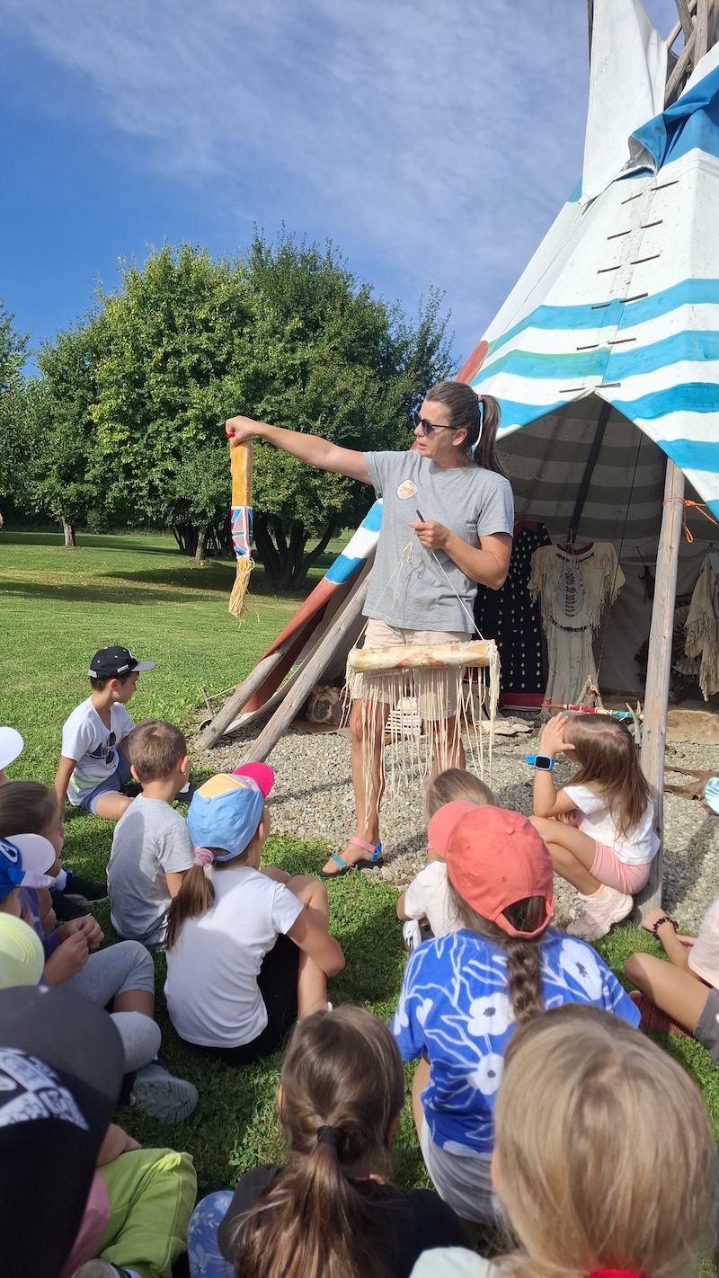 10 września klasy 2a i 2b wybrały się na wycieczkę do wioski Indiańskiej w miejscowości Szczyrzyc. Celem naszej wycieczki było zapoznanie się ze zwyczajami, tradycjami i obrzędami indiańskimi, które szczególnie działają na wyobraźnie dziecięcą i niosą pożyteczne wartości związane z umiejętnością życia w grupie.