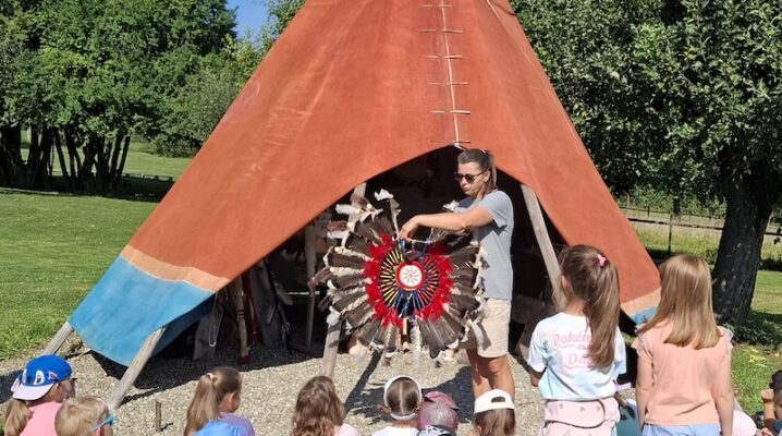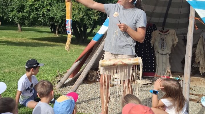 Wioska indiańska, zrobiła na nas ogromne wrażenie. Zostaliśmy oprowadzeni przez „Indiankę” po wiosce która opowiadała ciekawostki z życia Indian jak również prezentowała indiańskie przedmioty.