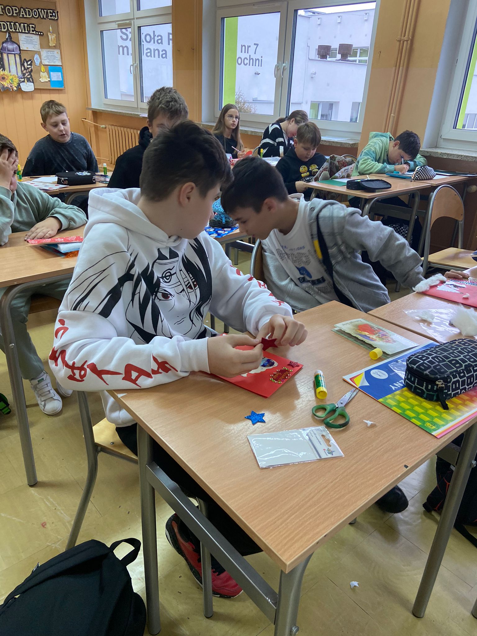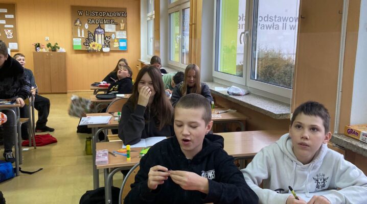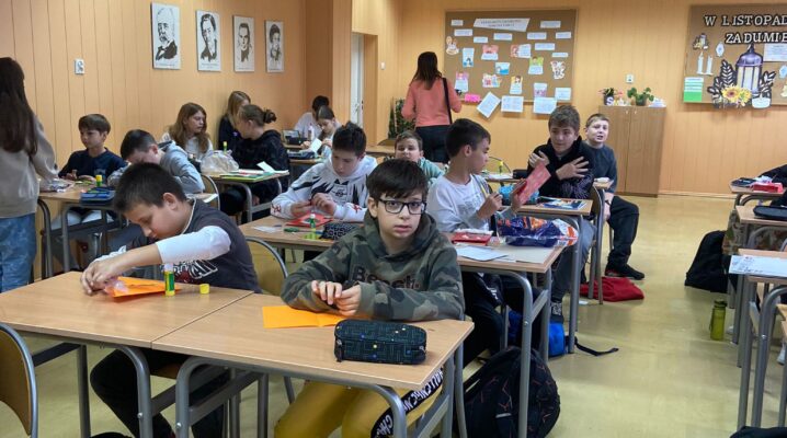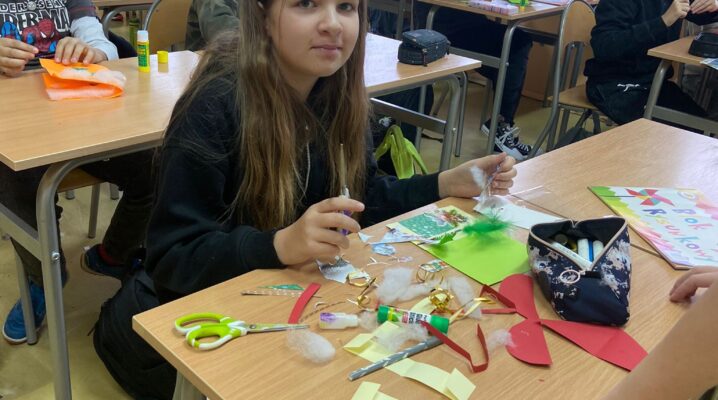 Uczniowie klasy 5c pod kierunkiem pani Izabeli Piekarczyk wzięli udział w projekcie eTwinning pt. ,,HO HO HO Merry Christmas”. Projekt polegał na samodzielnym wykonaniu kartek świątecznych, oraz napisaniu życzeń w języku angielskim. Projekt był realizowany przy udziale około 30 uczniów w wieku od 10 do 11 lat z greckiej szkoły Kato Poroita Junior High School Postal, code 62055 Serres, Greece. Jego głównym założeniem była poprawa kreatywności, zwiększenie pewności siebie, rozwój relacji międzyludzkich, zwiększenie motywacji i zainteresowania językiem angielskim.