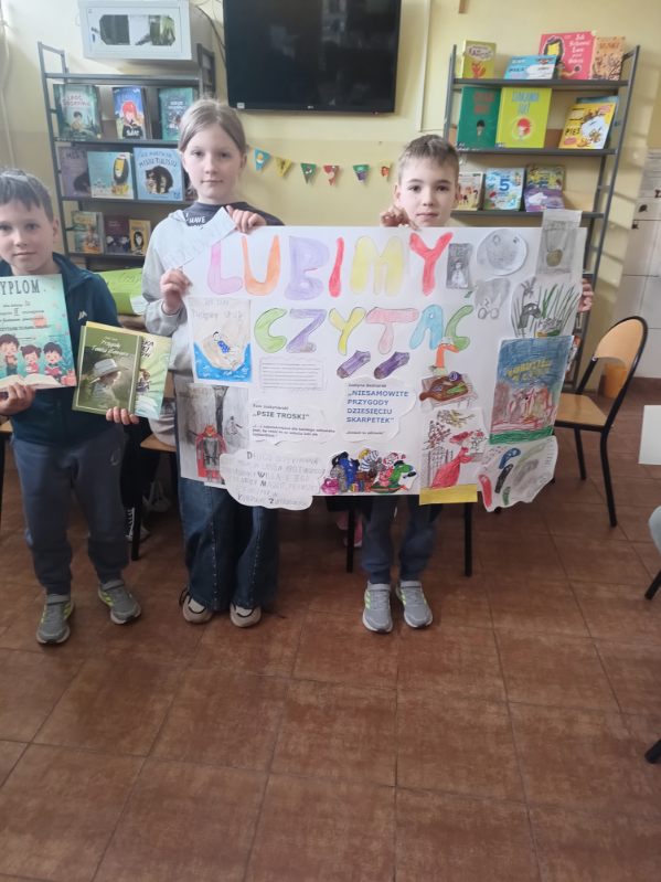 W marcowe przedpołudnie, w bibliotece szkolnej, odbyło się rozstrzygnięcie konkursu plastycznego „Czytanie, to fajna sprawa”.