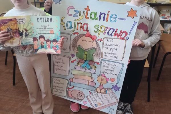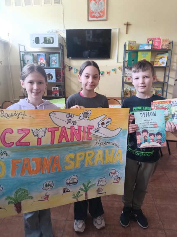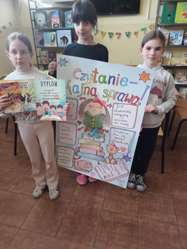 Oddziały czterech trzecich klas, przygotowały plakat, promujący zalety czytania.