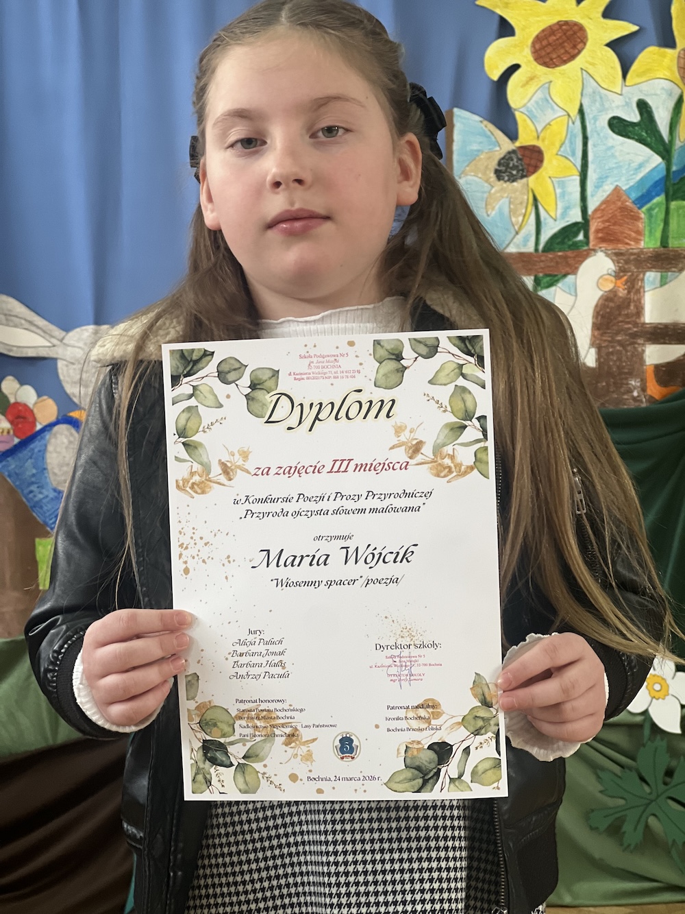 24 marca w Szkole Podstawowej nr 5 w Bochni odbyło się uroczyste podsumowanie konkursu poezji o tematyce przyrodniczej „Przyroda ojczysta słowem malowana”. Pomysłodawczynią wydarzenia była pani Eleonora Chmielarska, której pasja i zaangażowanie zaowocowały powstaniem tej cennej inicjatywy