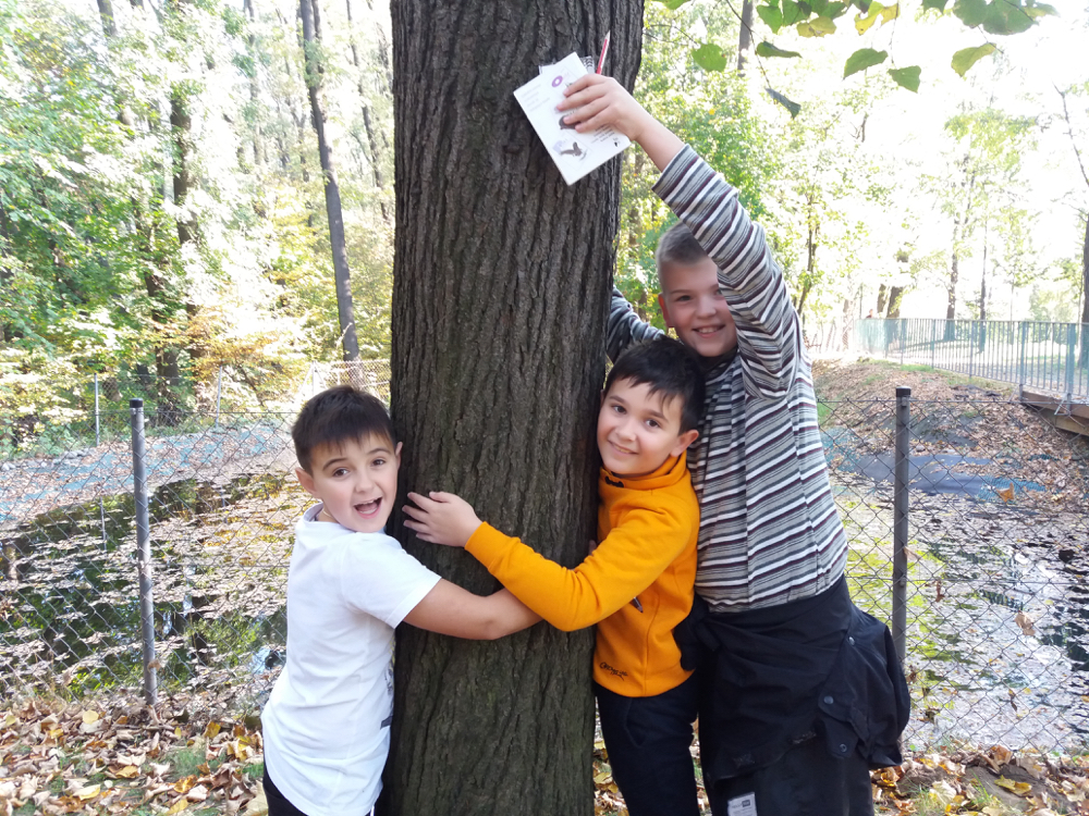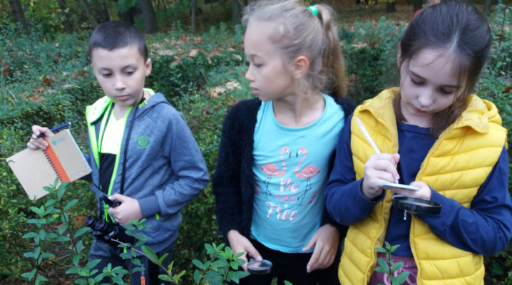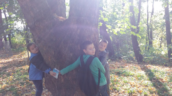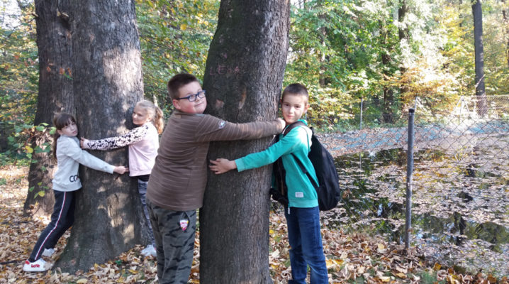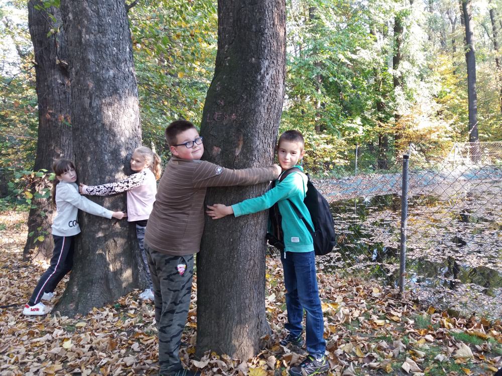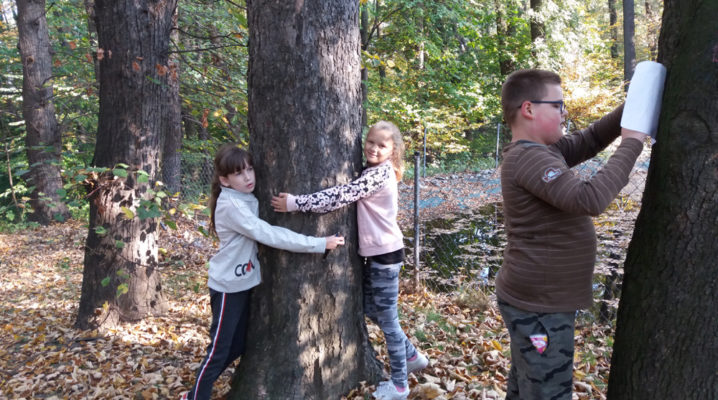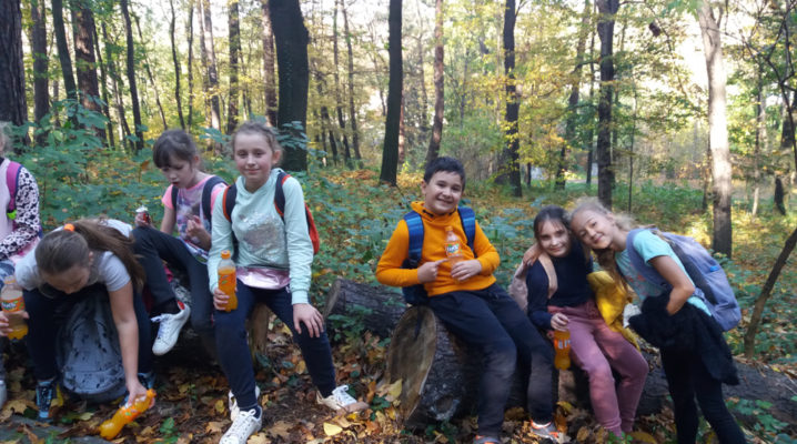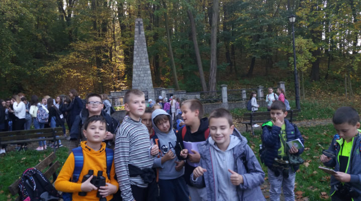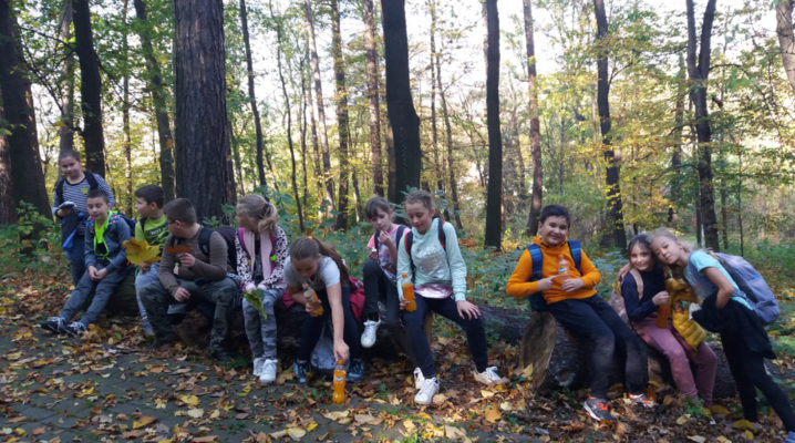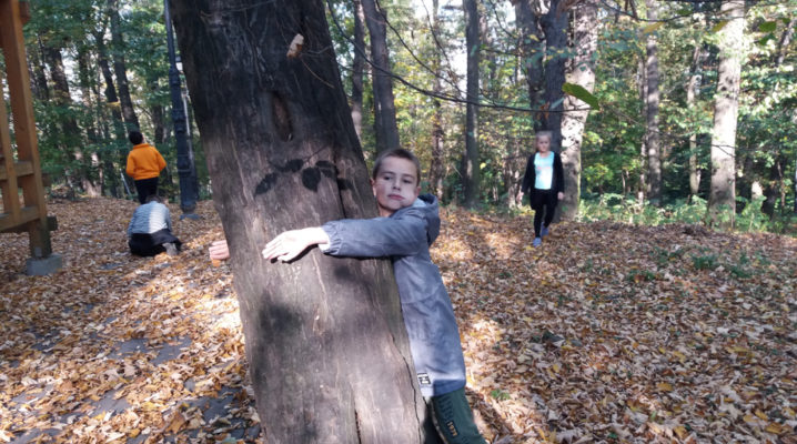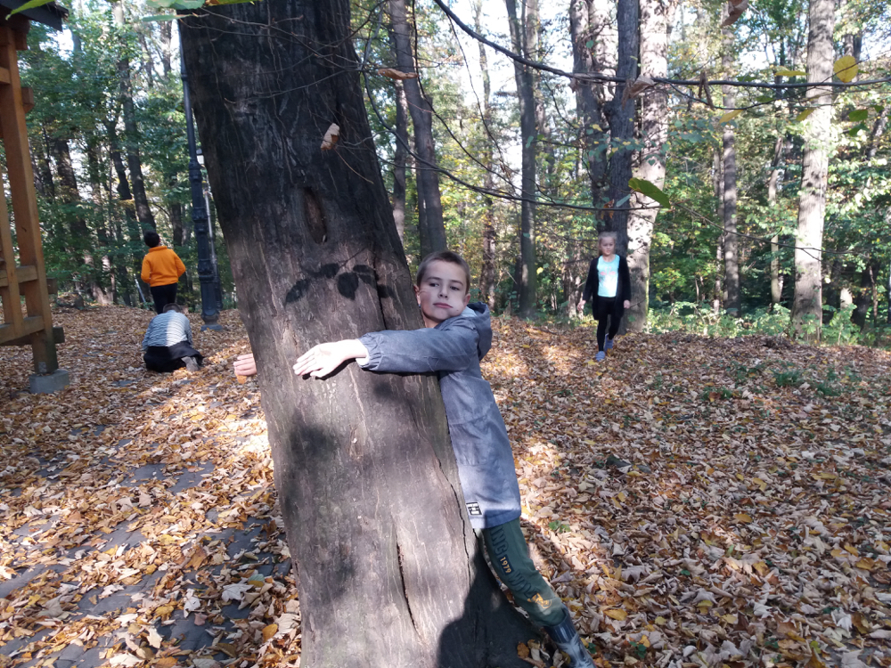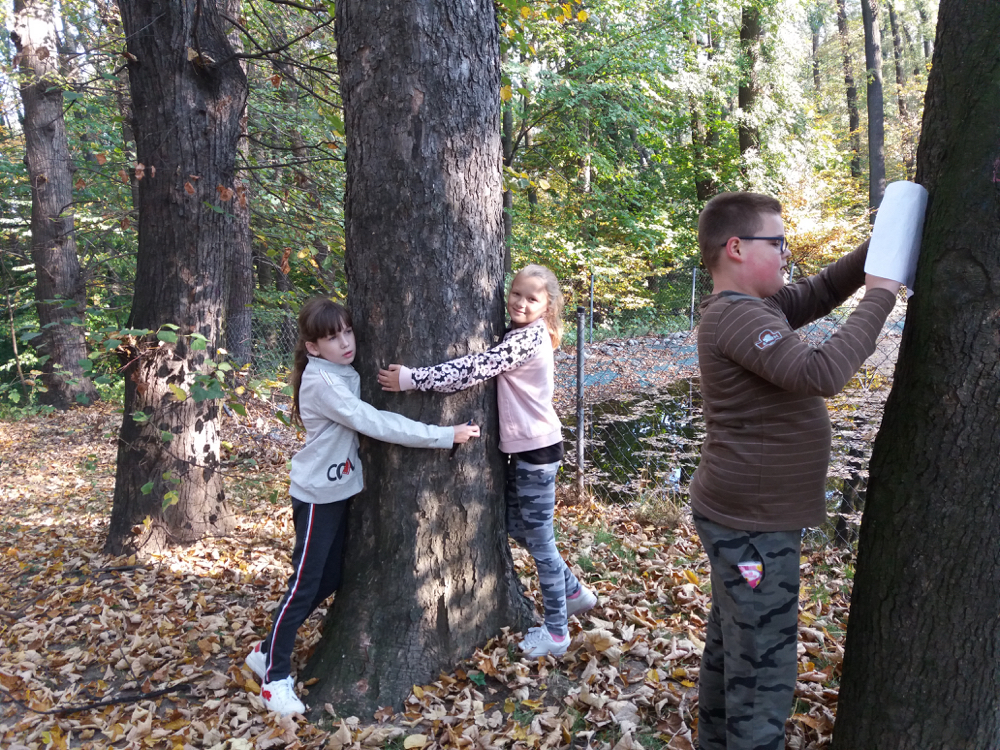 Uczniowie klasy 3a udali się na przyrodnicze zajęcia w terenie do lasku na Uzborni. Zaopatrzeni w lupy, lornetki, notesy i różne przewodniki do rozpoznawania roślin i zwierząt, wyruszyliśmy przeprowadzić obserwacje przyrodnicze. Sprawdzaliśmy jakie drzewa i krzewy rosną w lesie. Wykorzystaliśmy lupy do obserwacji małych owadów a także do dokładnego zbadania budowy liści i kory drzew. Przez lornetkę próbowaliśmy wypatrzyć ptaki, których niestety prawie w ogóle nie było. Rozpoznane okazy zapisywaliśmy w notesach – niektórzy mieli ich ponad 20. Drzewa poprawiają samopoczucie, działają leczniczo, dodają pozytywnej energii, więc przytulaliśmy się do nich, siadaliśmy na nie i kalkowaliśmy ich korę. Po wyczerpujących zajęciach był czas na zabawę a niektórzy ćwiczyli formę na siłowni. To były bardzo atrakcyjne i ciekawe lekcje.