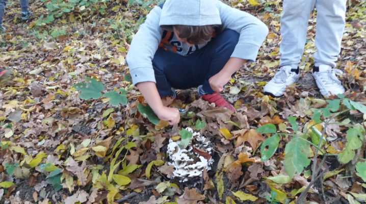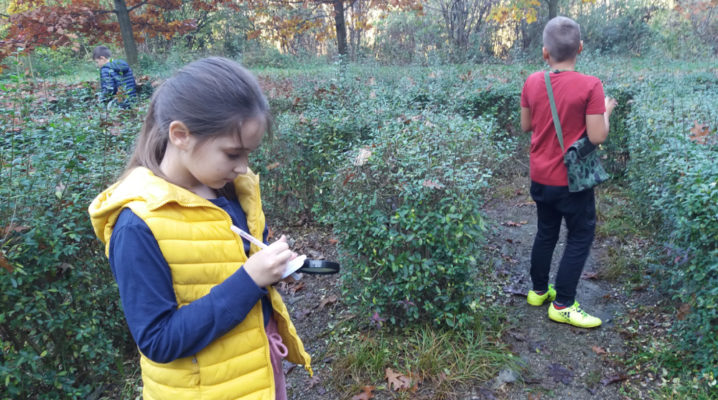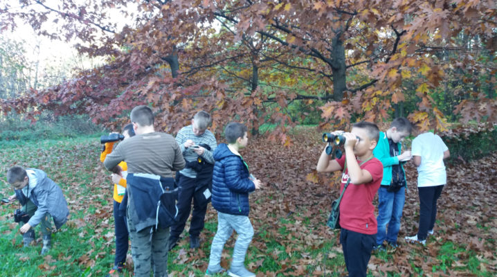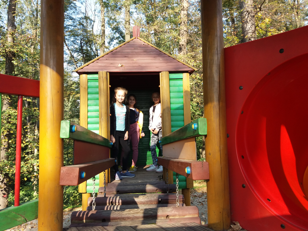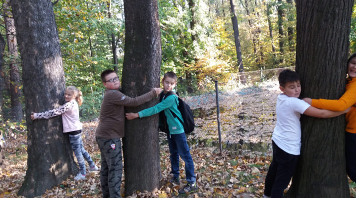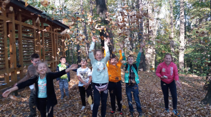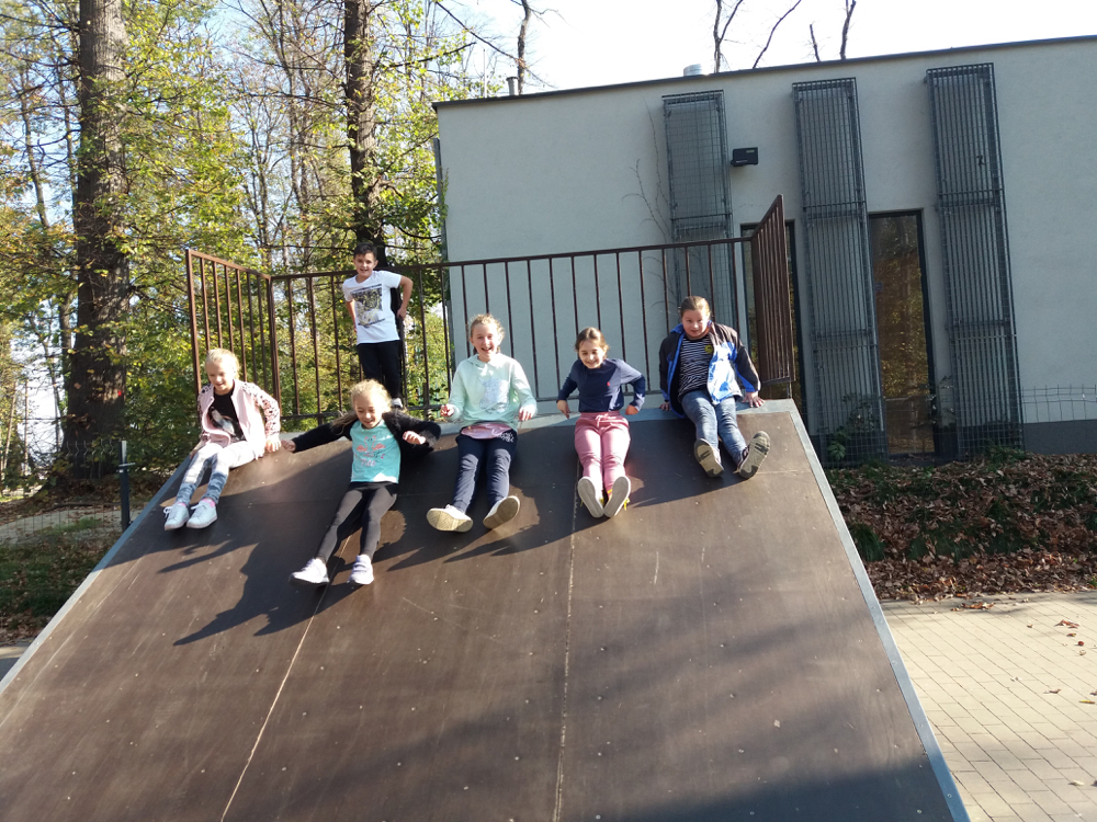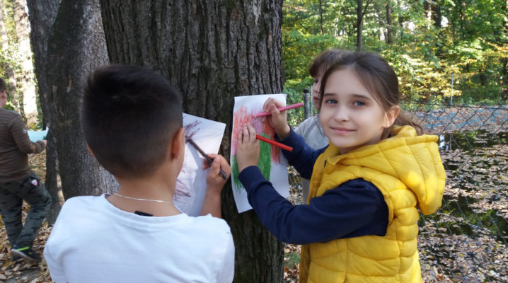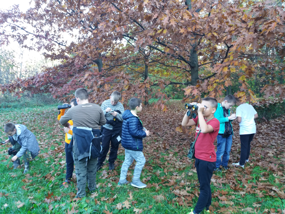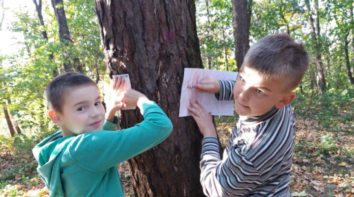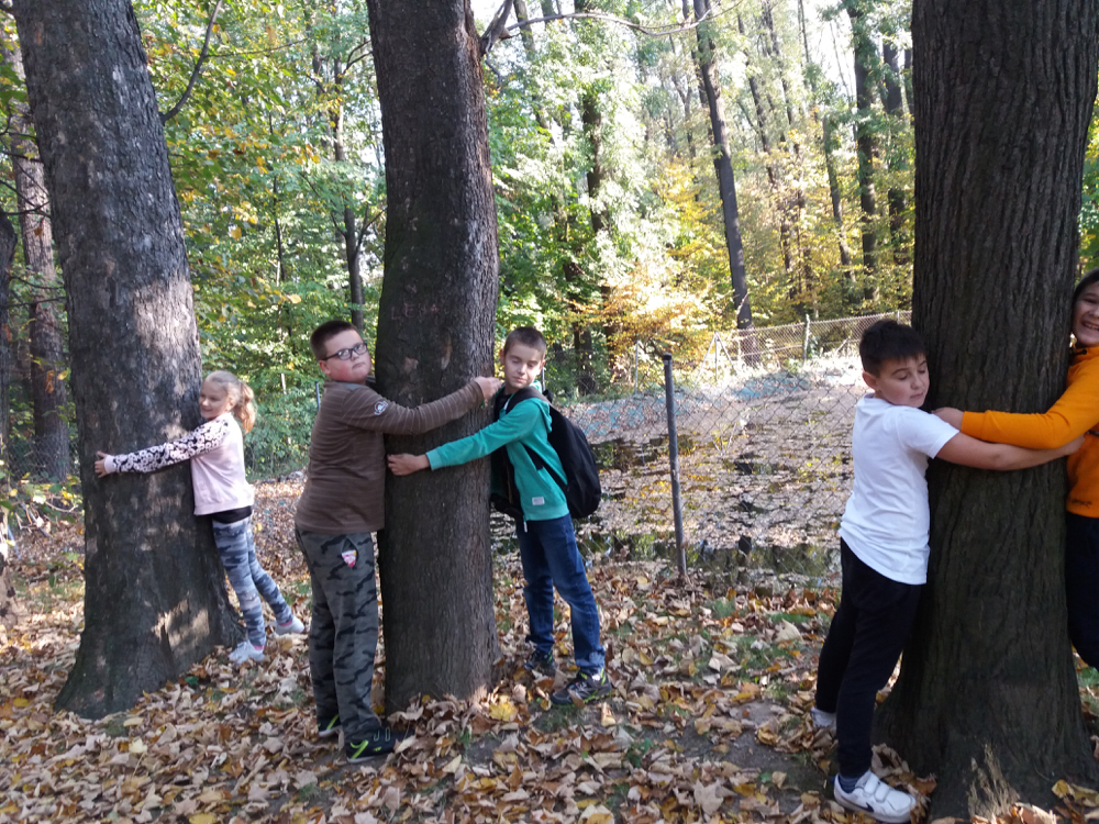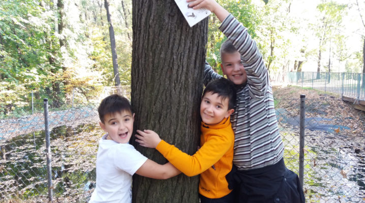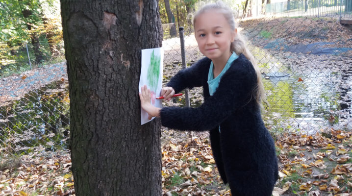 Uczniowie klasy 3a udali się na przyrodnicze zajęcia w terenie do lasku na Uzborni. Zaopatrzeni w lupy, lornetki, notesy i różne przewodniki do rozpoznawania roślin i zwierząt, wyruszyliśmy przeprowadzić obserwacje przyrodnicze. Sprawdzaliśmy jakie drzewa i krzewy rosną w lesie. Wykorzystaliśmy lupy do obserwacji małych owadów a także do dokładnego zbadania budowy liści i kory drzew. Przez lornetkę próbowaliśmy wypatrzyć ptaki, których niestety prawie w ogóle nie było. Rozpoznane okazy zapisywaliśmy w notesach – niektórzy mieli ich ponad 20. Drzewa poprawiają samopoczucie, działają leczniczo, dodają pozytywnej energii, więc przytulaliśmy się do nich, siadaliśmy na nie i kalkowaliśmy ich korę. Po wyczerpujących zajęciach był czas na zabawę a niektórzy ćwiczyli formę na siłowni. To były bardzo atrakcyjne i ciekawe lekcje.