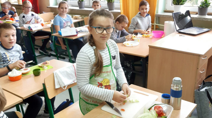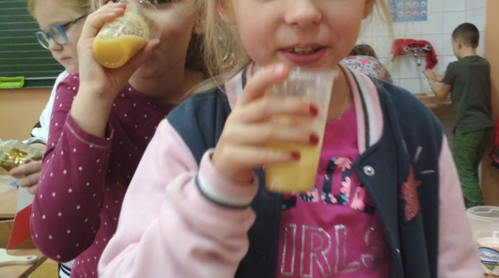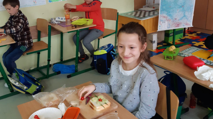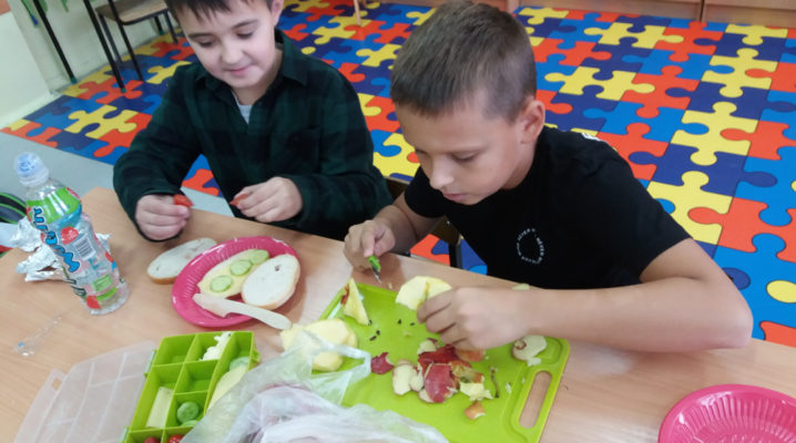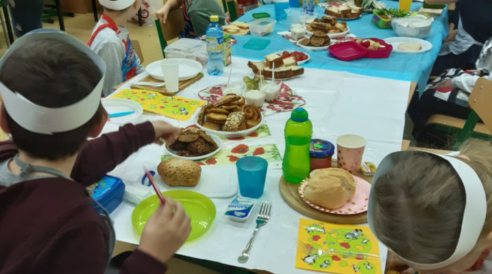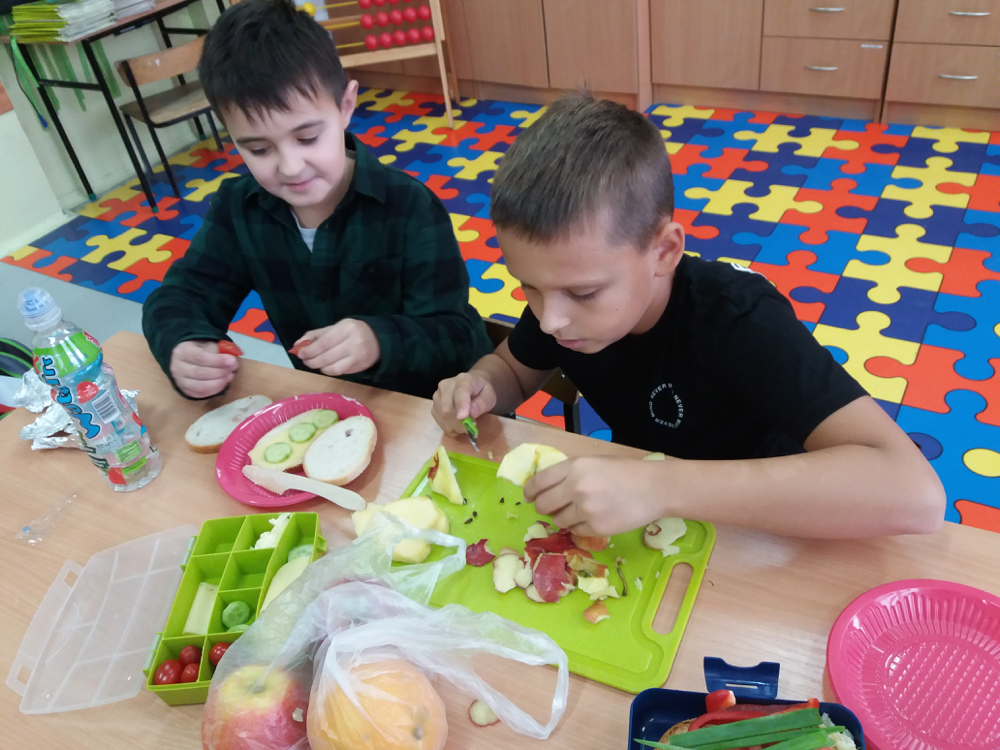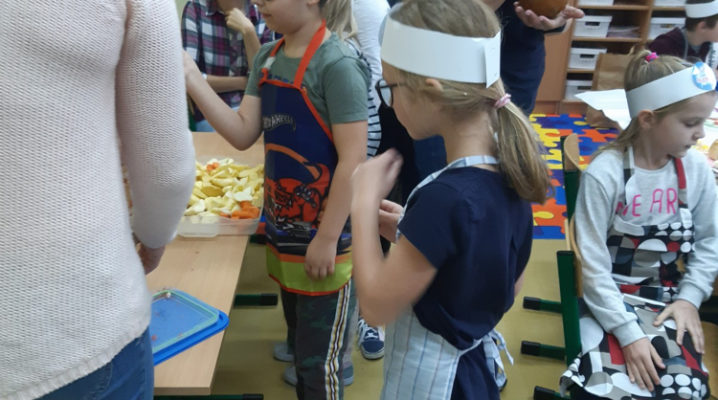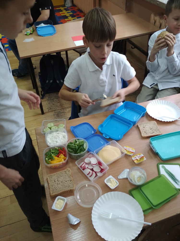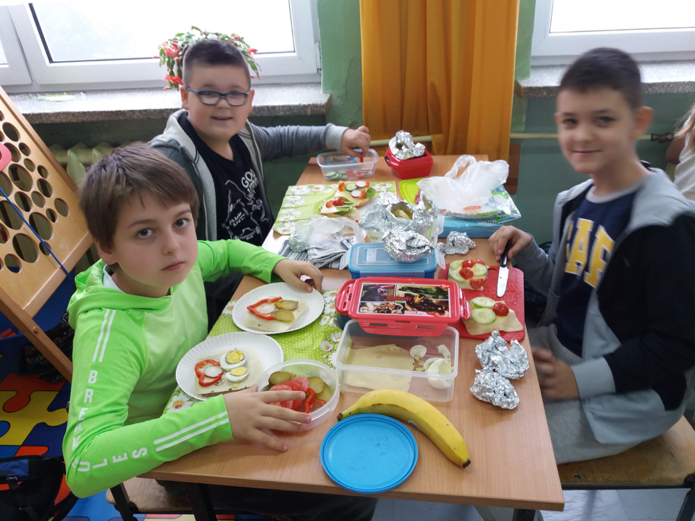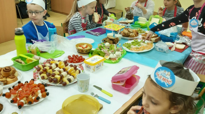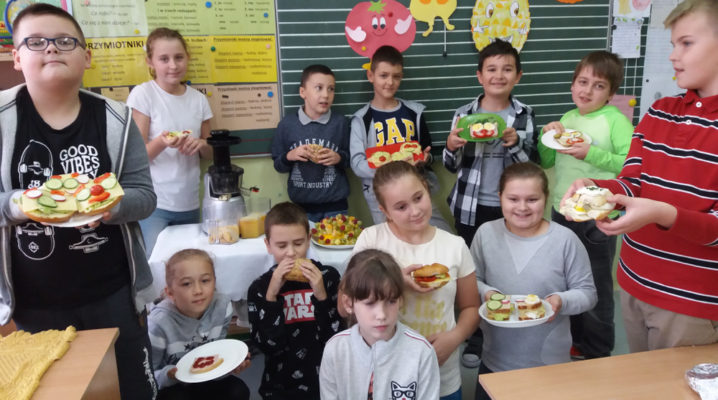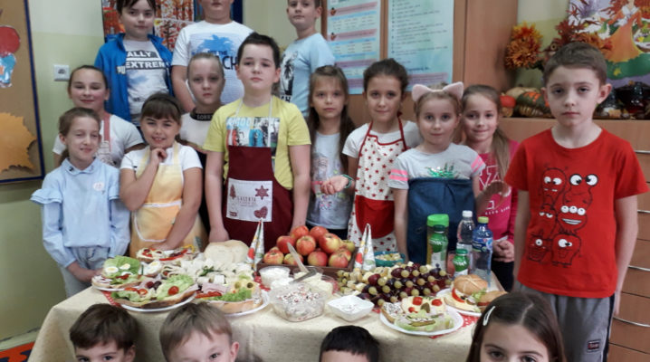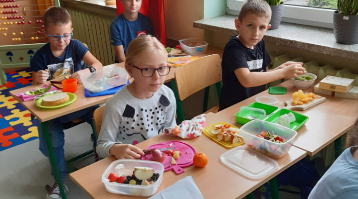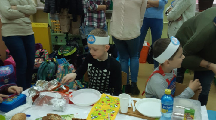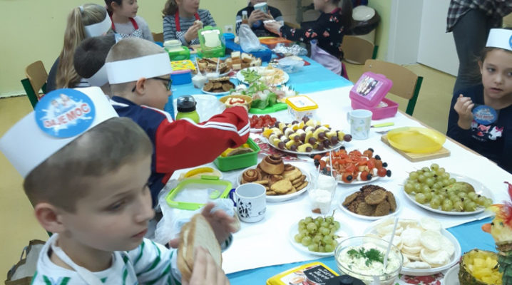 Już od kilku lat, młodsza społeczność naszej szkoły uczestniczy w ogólnopolskim programie edukacyjnym ,,Śniadanie Daje Moc”, który odbywa się 8 listopada. W tym roku również dzieci samodzielnie wykonywały kanapki, sałatki, szaszłyki, wyciskały soki. Było zdrowo, wesoło i kolorowo. Mamy nadzieję, że nasi uczniowie będą pamiętać o tym, że „śniadanie” to najważniejszy posiłek dnia, dzięki któremu mają energię do nauki i zabawy oraz lepiej koncentrują się na lekcjach. Dziękujemy serdecznie rodzicom, którzy włączyli się i pomogli w przeprowadzeniu tej wyjątkowej akcji – święto śniadania.