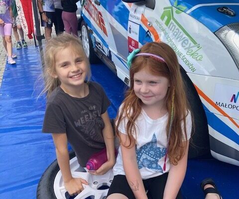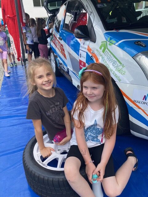 5 czerwca odwiedził nasze zeróweczki pan Łukasz Mrożek – tata Maksa z 0c, który podzielił się z nami swoją pasją. Dzieci miały okazję dowiedzieć się kim jest kierowca rajdowy, po co kierowcy pilot (nie mylić z pilotem do telewizora J), jak wyglądają starty w rajdach, a przede wszystkim zobaczyć sprzęt i samochód jakim pan Mrożek startuje w rajdach. Auto rajdowe przyciągnęło uwagę na tylko naszych zerówkowiczów, ale także starszych kibiców. Serdecznie dziękujemy panu Mrożkowi oraz panu Legutko za przygotowanie tego fascynującego spotkania i życzymy całej ekipie powodzenia w przyszłych startach.