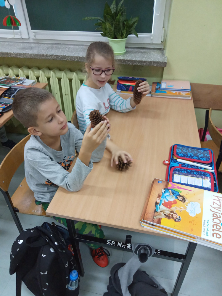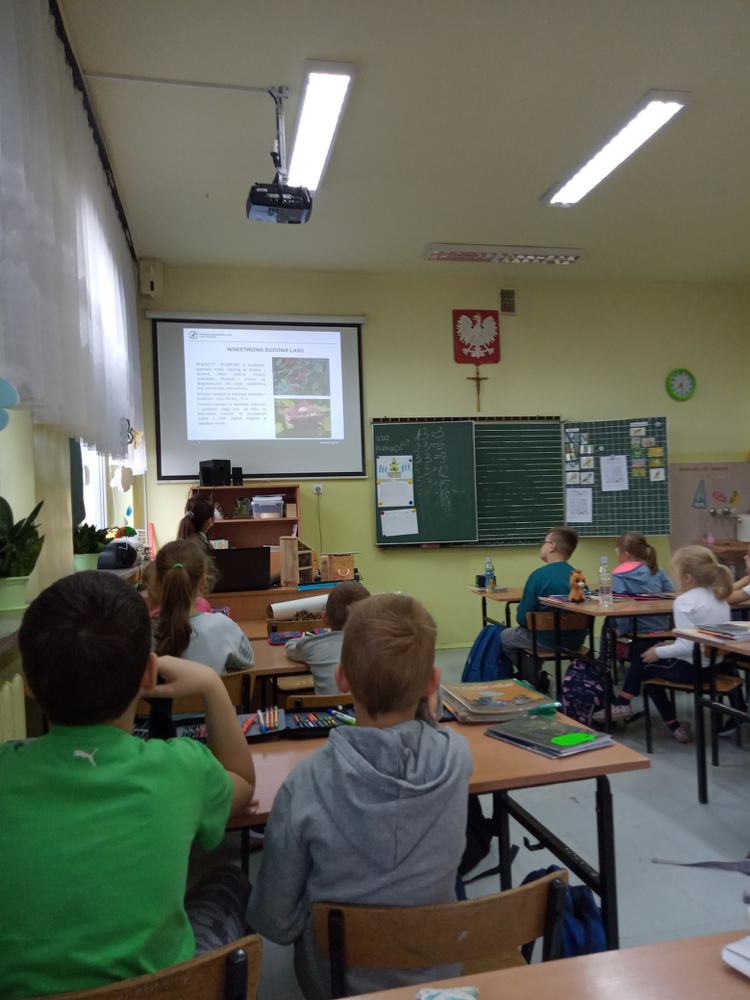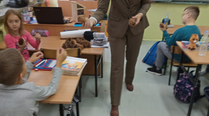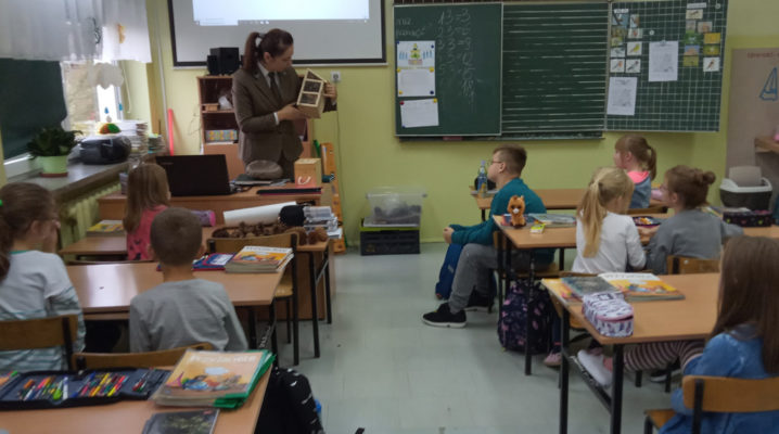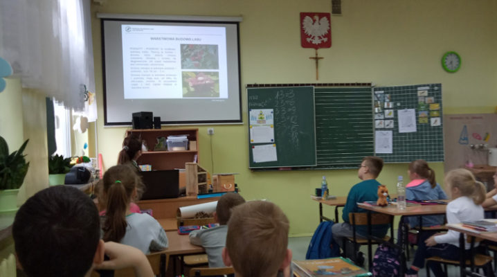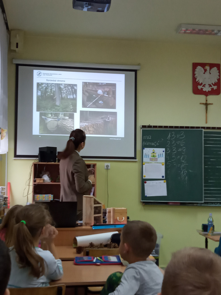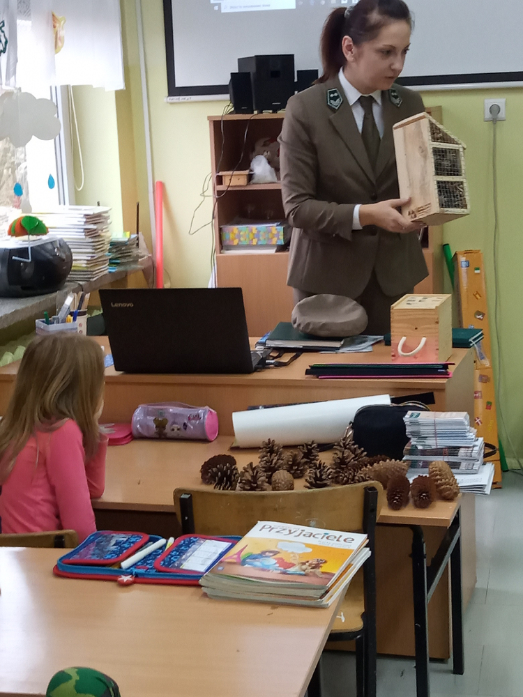 5 listopada klasę 2c odwiedziła pani leśnik. Opowiadała ona na temat swojej pracy, zwierząt żyjących w lesie i ich ochrony, roślin tam występujących oraz właściwego zachowania podczas kontaktu z otaczającą nas przyrodą. Dowiedzieliśmy się dużo o trudach życia zwierząt w okresie zimy i znaczącej roli człowieka w ich dokarmianiu. Wyjaśniła również, że ludzie są gośćmi w lesie i muszą szanować zwyczaje gospodarzy, czyli zwierząt w nim żyjących. Mieliśmy również okazję oglądnąć różnego rodzaju okazy przyrodnicze pochodzące z lasu. Na zakończenie tego miłego i radosnego spotkania zostaliśmy obdarowani odblaskami, folderami informacyjnymi na temat lasów i ich mieszkańców oraz plakatami. To był naprawdę udany dzień!