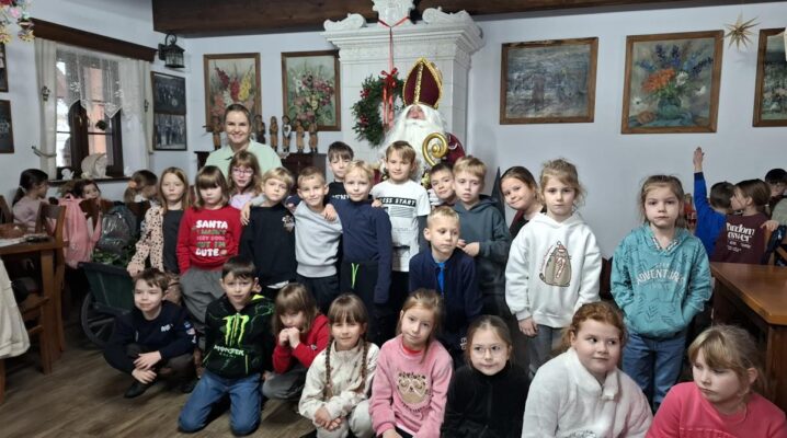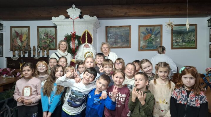 W tym roku spotkaliśmy się z Nim w Zagrodzie na Jędrzejówce w Laskowej. Podczas wizyty skosztowaliśmy pysznych tradycyjnych racuchów oraz zjedliśmy wspaniały obiad. Na warsztatach dzieci poznały dawne tradycje bożonarodzeniowe oraz ubrały choinkę