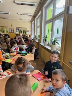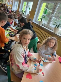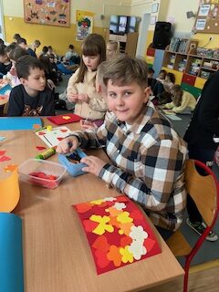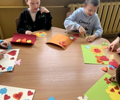 Warsztaty świetlicy- wątek związany z Dniem Babci i Dziadka. Przy akompaniamencie piosenki M. Murawskiej „Namaluje miłość”- malujemy laurki dla naszych kochanych Seniorów.